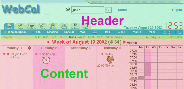 by WebCalendar contain two parts: a navigation header and a content table scaled nicely