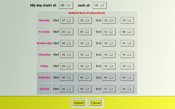 « Set Working Hours »