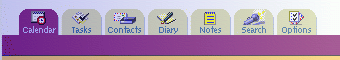 8 tabs: calendar, tasks, contacts, diary, notes, search, options