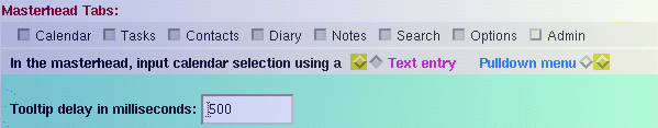 - Masterhead Tabs: The default calendar display contains
