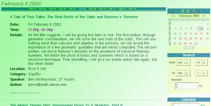 « Detailed Fancy List View » This view is also designed for publishing your calendar online. It displays your events in the specified date range in an even nicer format. Detailed Fancy List View
